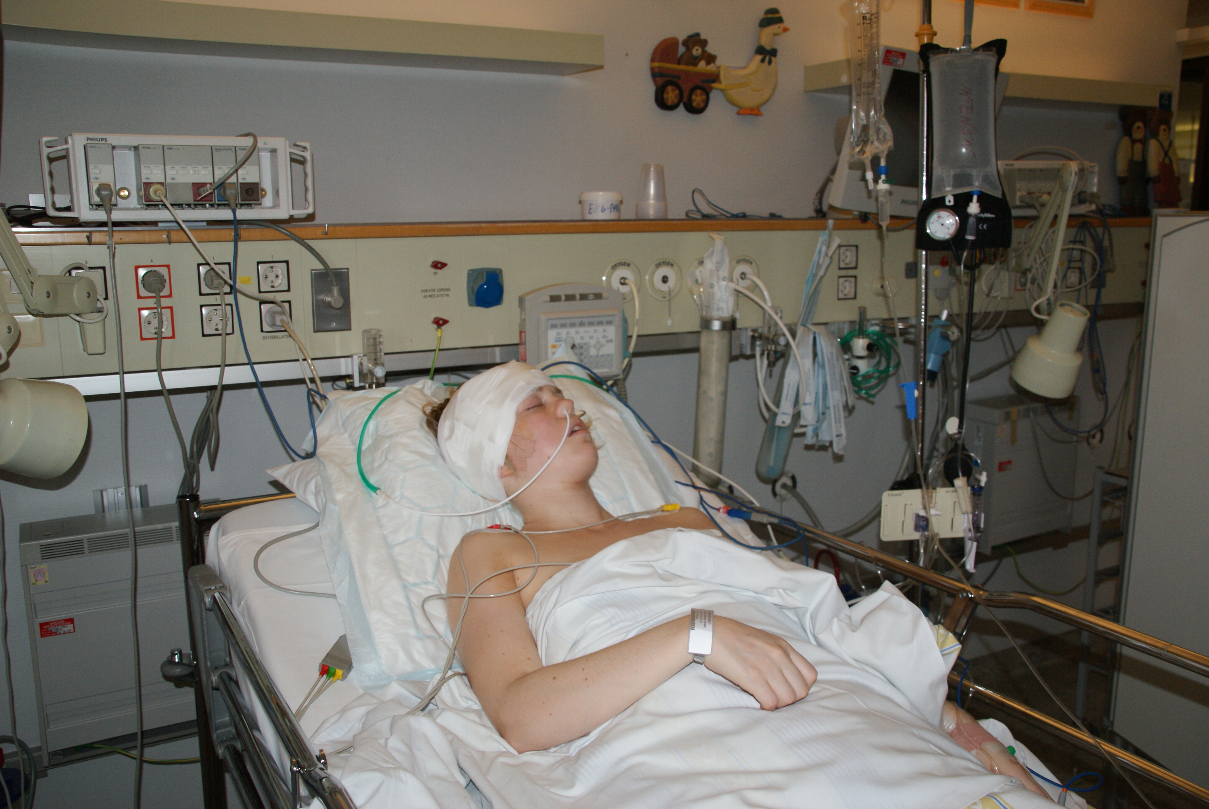 Med dette innlegget, er jeg ikke ute etter å sanke bekreftelser og kompliment. Jeg ønsker bare å få fram de sidene med operasjonen som ikke dere «utenfor» tenker over. Jeg har tenkt på dette blogginnlegget lenge, men jeg har ikke vært klar for å vise dere operasjonsbildene før nå. Nå som jeg har klart å distansere meg fra «operasjonsOda». Og la meg gjøre det helt klart at man ser VIRKELIG ikke ut som personer på tv-serier etter en hjerneoperasjon. Da jeg så bildene fra Haukeland, flere måneder etterpå, kjente jeg meg ikke igjen. Det samme gjorde ikke min søster, Mari. Jeg tenker stakkars familien min, som kom inn til dette synet: